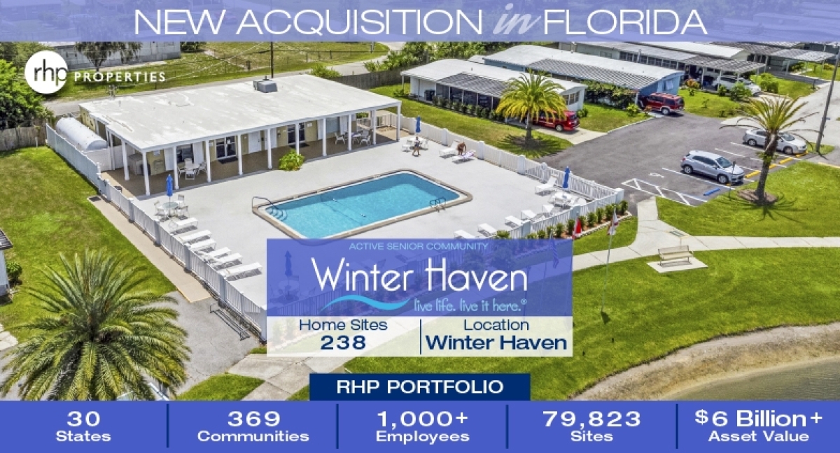 RHP Properties Announces Purchase of Winter Haven, Florida Manufactured Home Community with 238 Home Sites