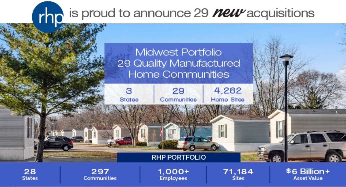 RHP Properties Announces Acquisition of 29 Midwest Manufactured Home Communities