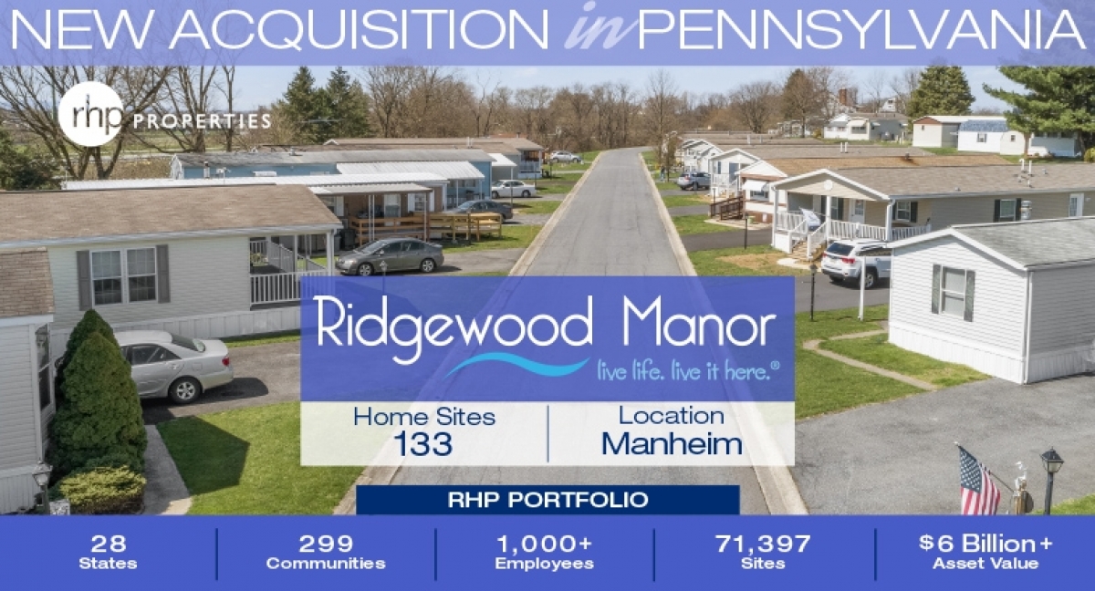 RHP Properties Announces Acquisition of Manheim Area Manufactured Home Community